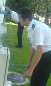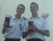 Tilsynelandende så er det sådan at når man på denne skole får sin første og anden streg på skulderen, så skal der drikkes.. i første omgang en "A BOOT OF ALE" og i anden omgang "A YARD OF ALE" ...